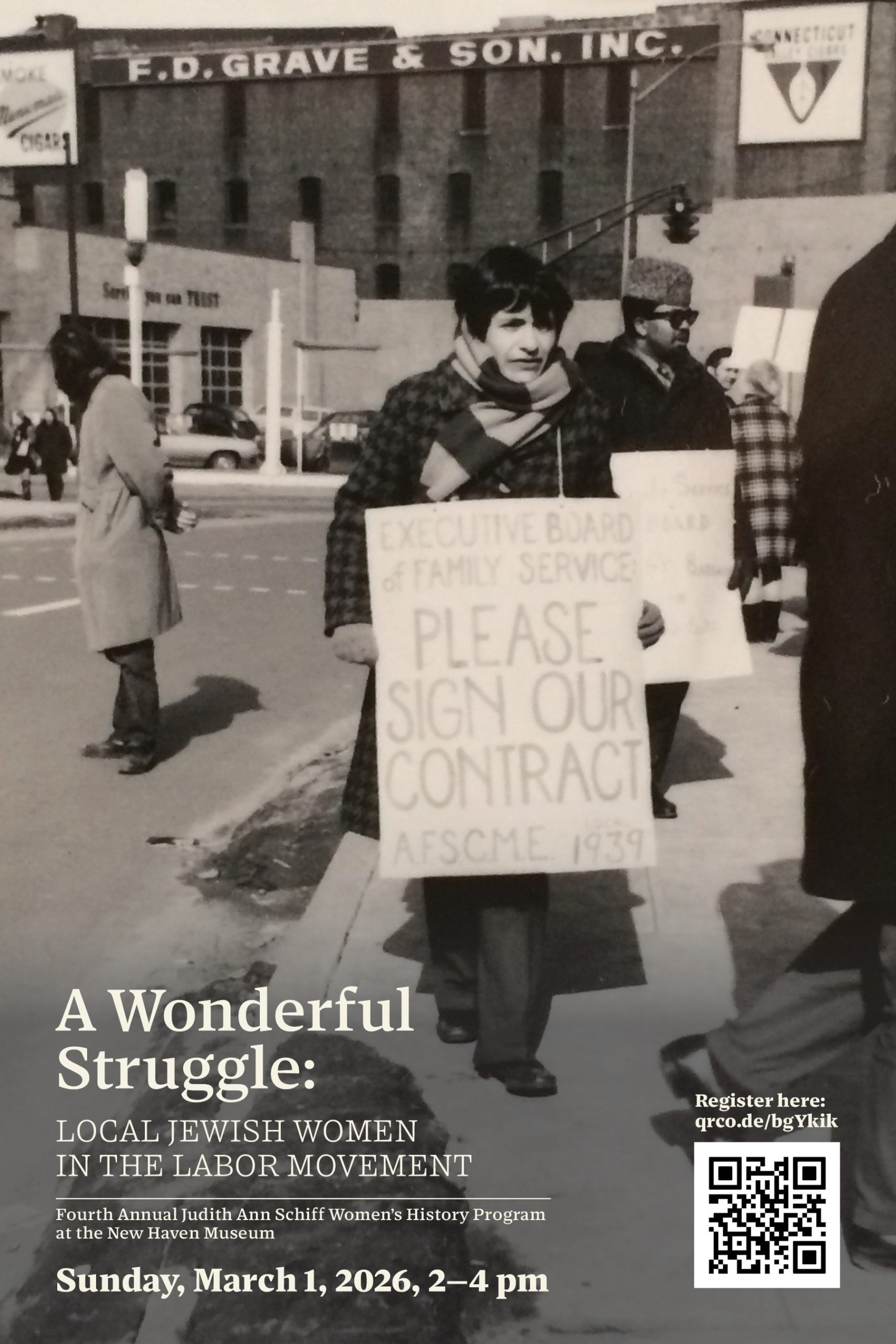 Teachers. Social workers. Secretaries. When we think of women in the labor movement, these occupations may not come to mind. Yet in New Haven and elsewhere, women in white-collar and “pink-collar” jobs broke new ground in the 1970s and ’80s by organizing and demanding labor rights. The New Haven Museum (NHM) and Jewish Historical Society of Greater New Haven (JHSGNH) will present the stories of Jewish women in New Haven who fought for labor rights during the 20th century during the Fourth Annual Judith Ann Schiff Women’s History Program, “A Wonderful Struggle: Local Jewish Women in the Labor Movement,” on Sunday, March 1, 2026, at 2 p.m. Also streaming on Facebook Live. In the case of inclement weather, the event will be recorded for social media.